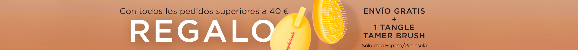 Para encomendas superiores a 40€, envio gratuito e oferta de uma escova Tangle Tamer (apenas para Espanha/península).