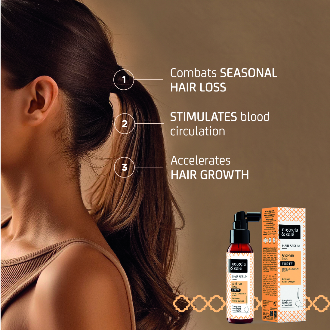 Its advanced formula targets the three key mechanisms involved in hair loss: it strengthens the anchorage of the hair to the root, boosts follicular activity, and reduces scalp inflammation.