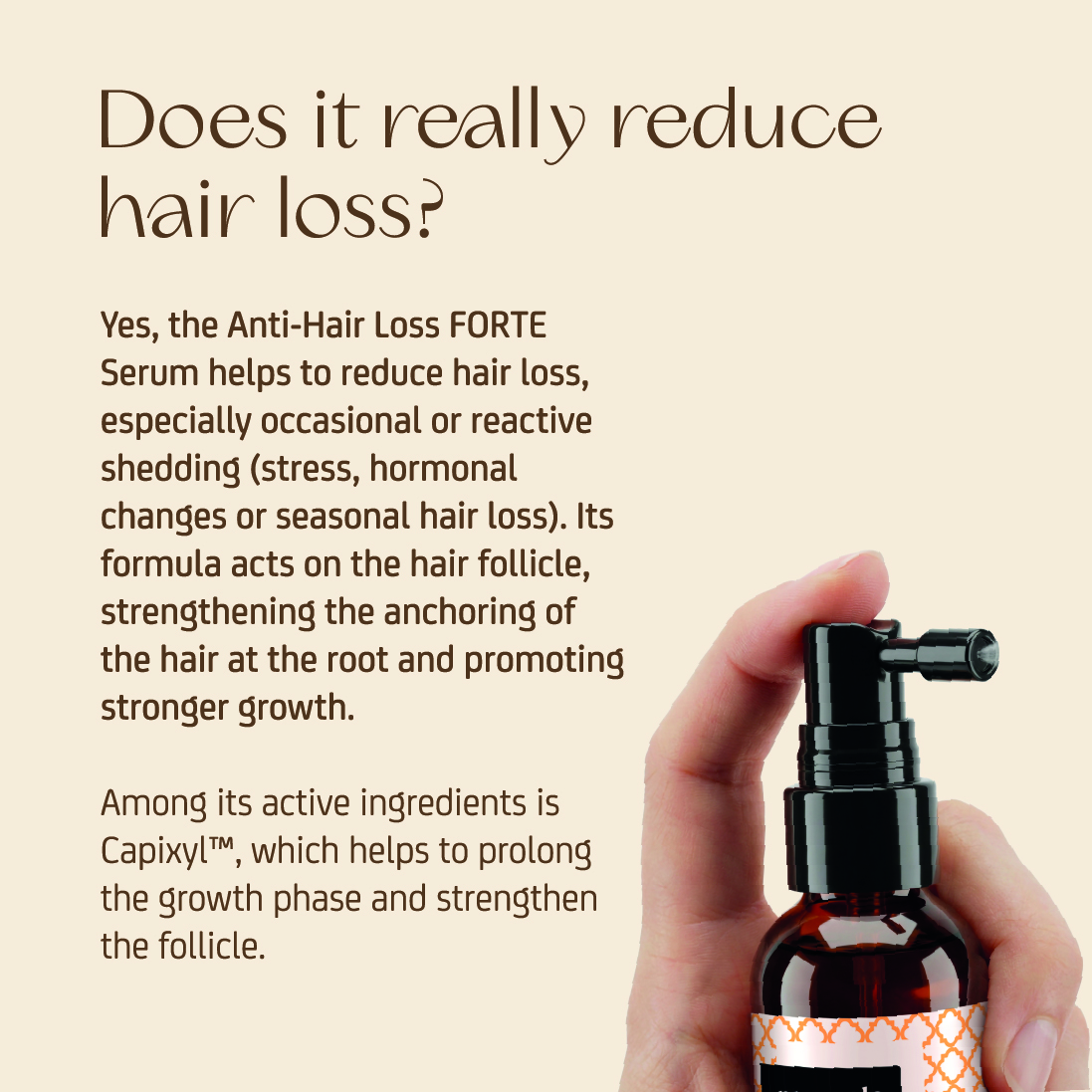 Anti-Hair Loss Forte Serum for men and women, is formulated as a powerful intensive treatment to combat active hair loss (pronounced hair loss of more than 150-200 hairs per day).