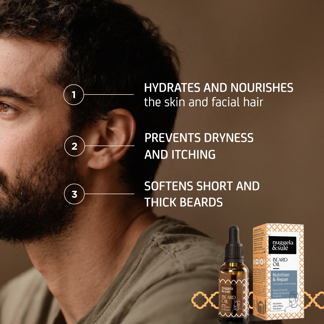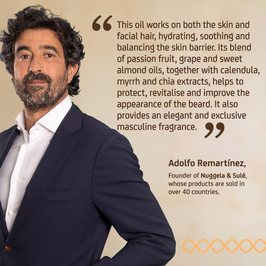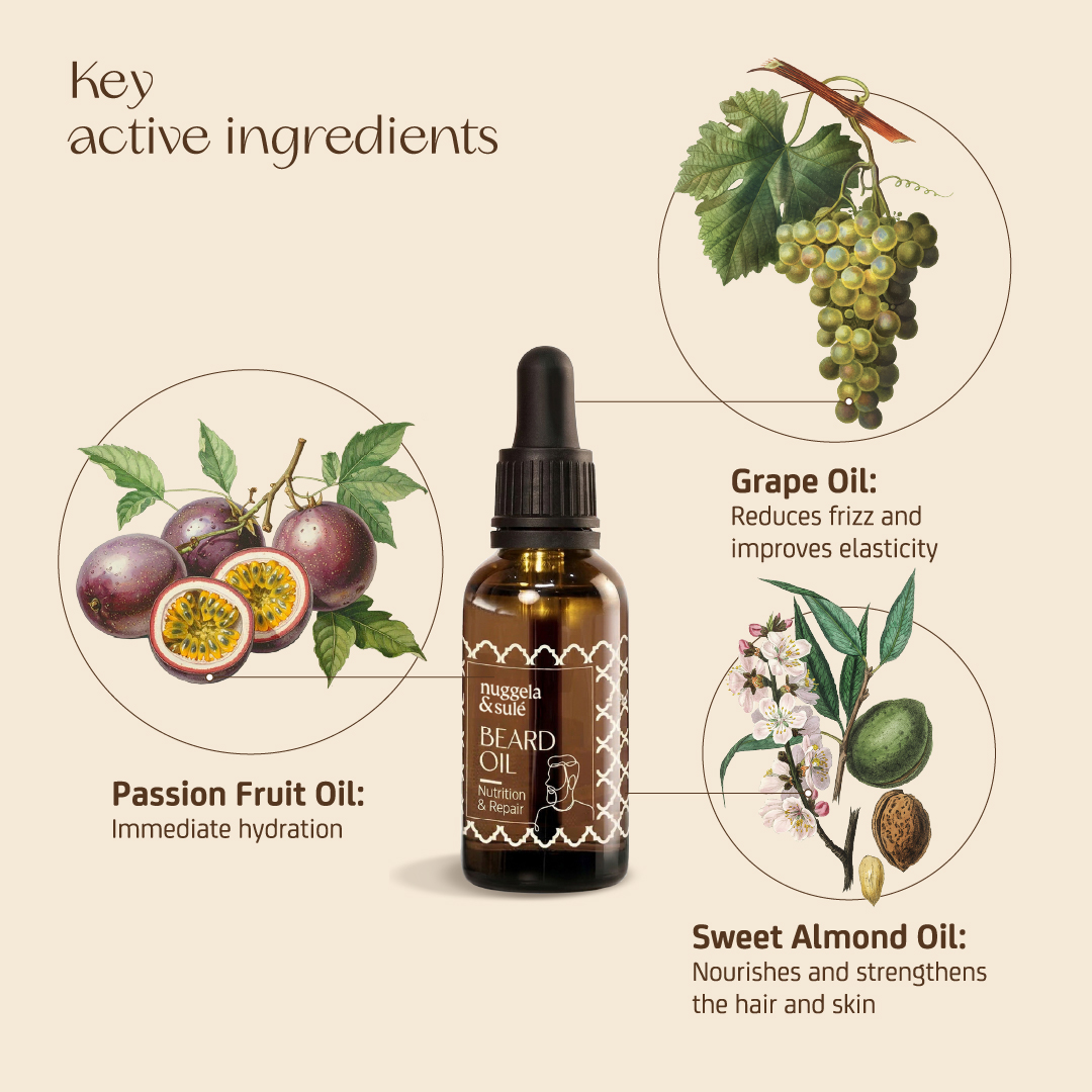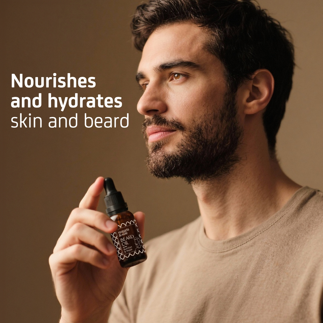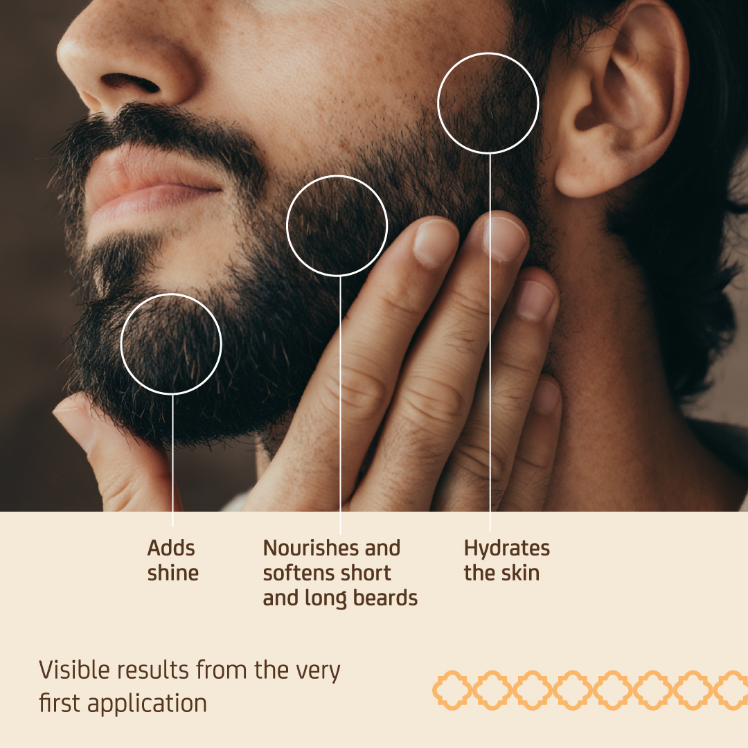 Nourishing beard oil. With natural oils that hydrate, soften and add shine to your beard