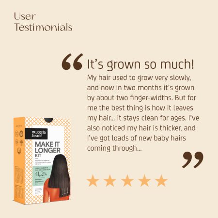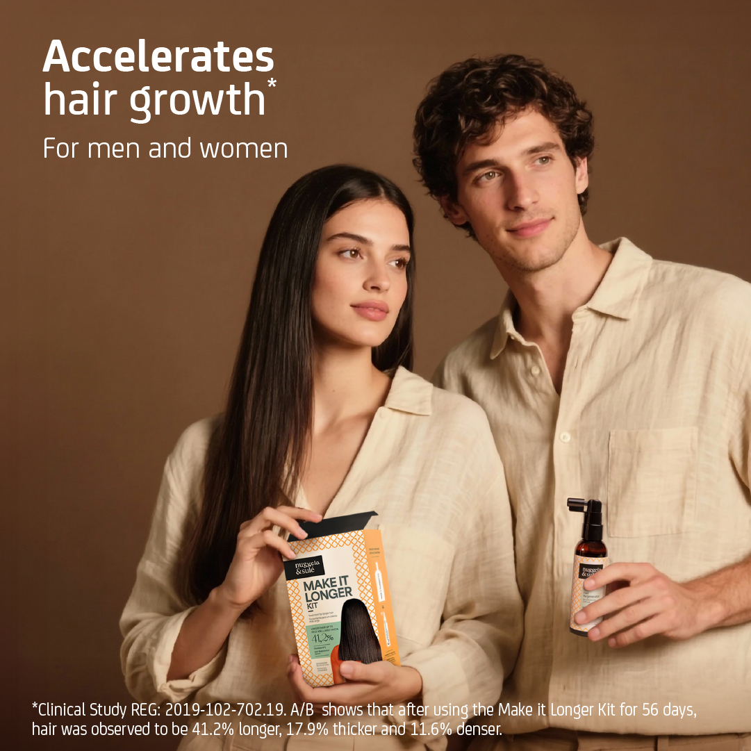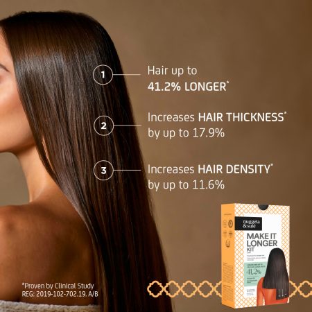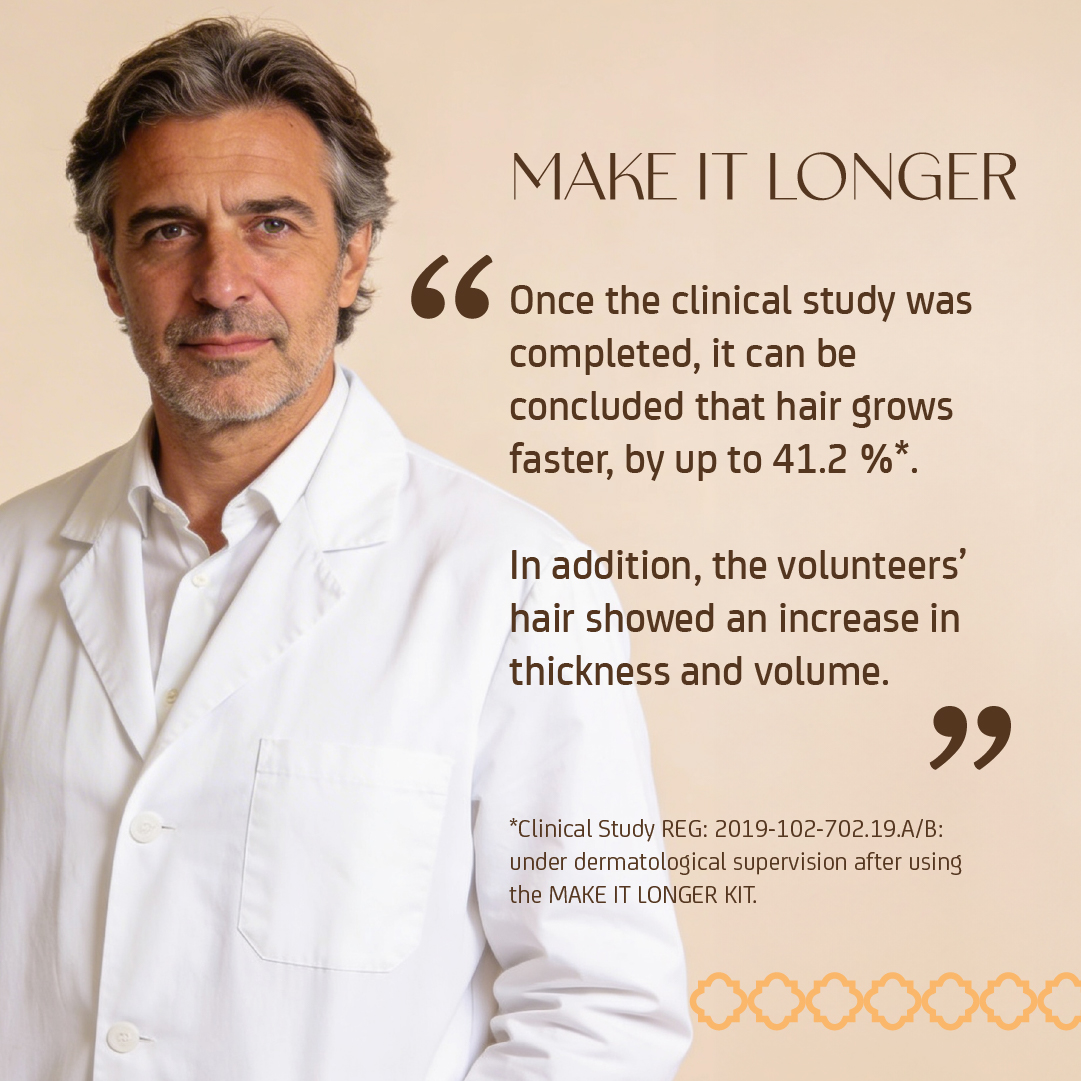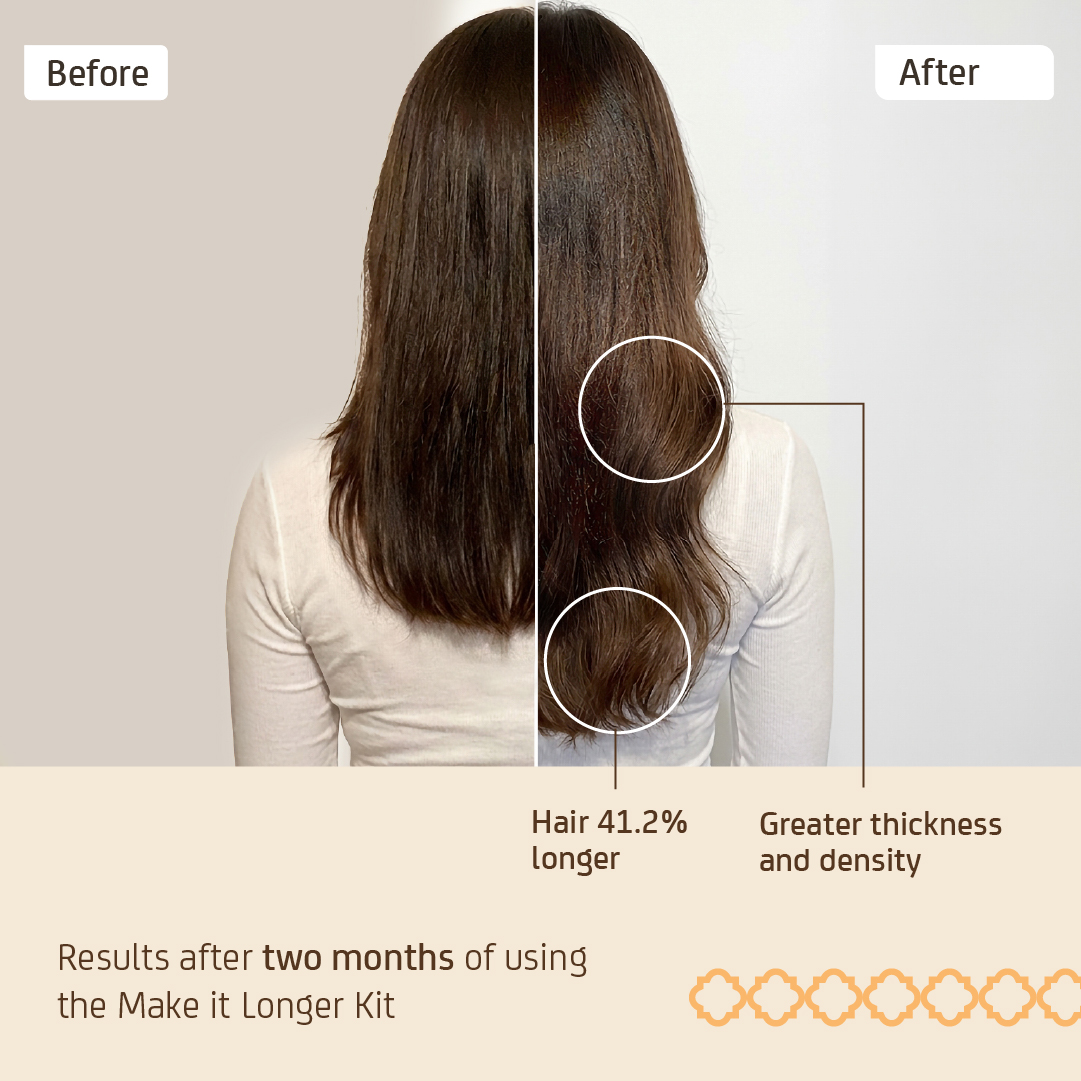 The first hair treatment for men and women that has been scientifically proven to make hair 41.2% longer, 17.9% thicker, and 11.6% denser.