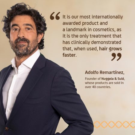 - Sulfopeptides and Aminosaccharides: regulate and modulate sebaceous hyper secretion, while inhibiting the lipogenesis and sebaceous disorders. Furthermore, they stimulate the protein synthesis of the hair, improving the capillary structure, prevents the entrence of external aggressive agents, as well as from capillary dehydration and nourishment. Due to this protein increase, it intervenes in the formation of the hair follicle and therefore in the hair growth cycle