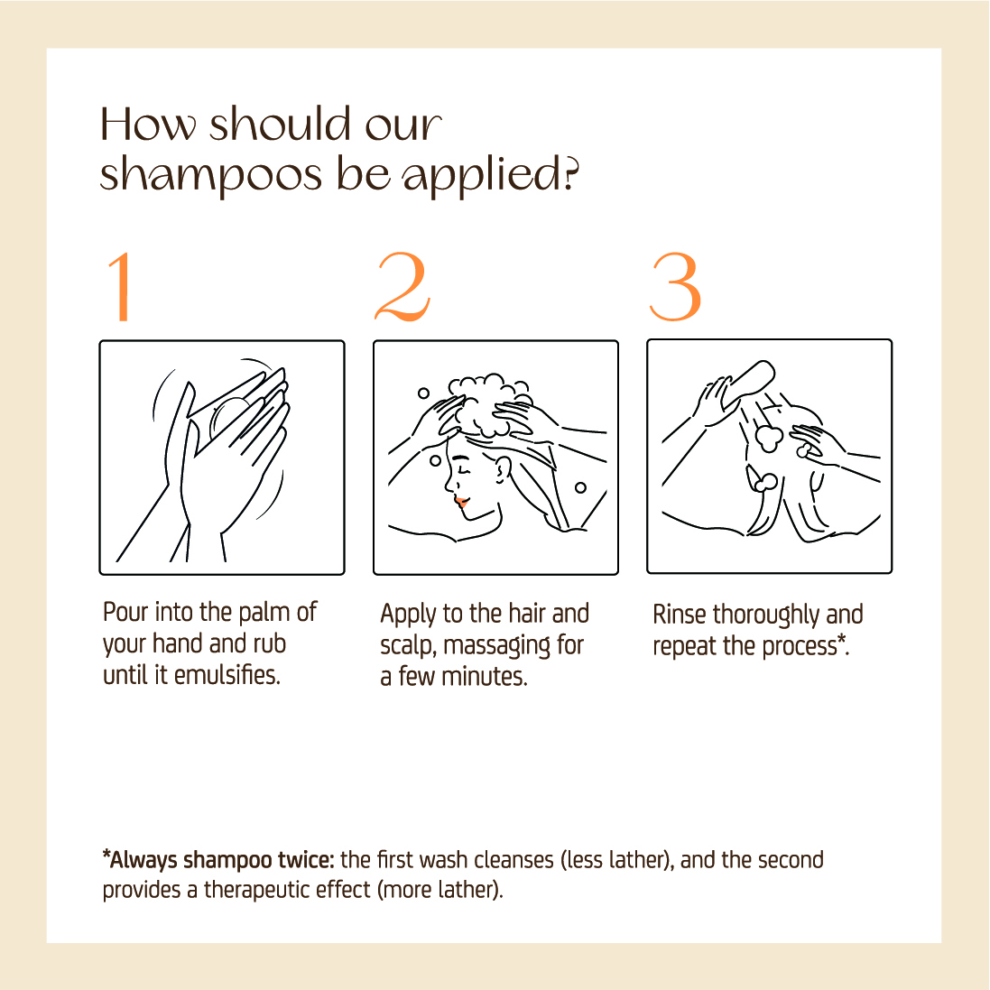 *The first wash produces little lather due to its deep-cleansing effect while the second wash nourishes it.