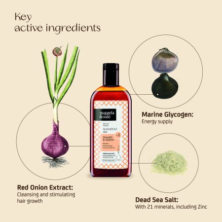 Its main active ingredients, Red Onion Extract, Marine Glycogen, and Dead Sea Salts, strengthen the hair and help prevent hair loss.