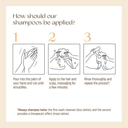 BY FOLLOWING THESE STEPS: you can prepare and activate the shampoo’s ingredients in your hand. Then, you can evenly distribute the shampoo on your hair and scalp, which will create more lather and make it easier to massage your scalp.