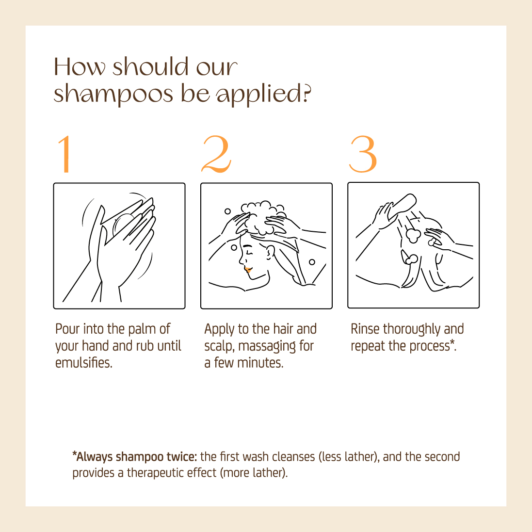 *The first wash produces little lather due to its deep-cleansing effect while the second wash nourishes it.