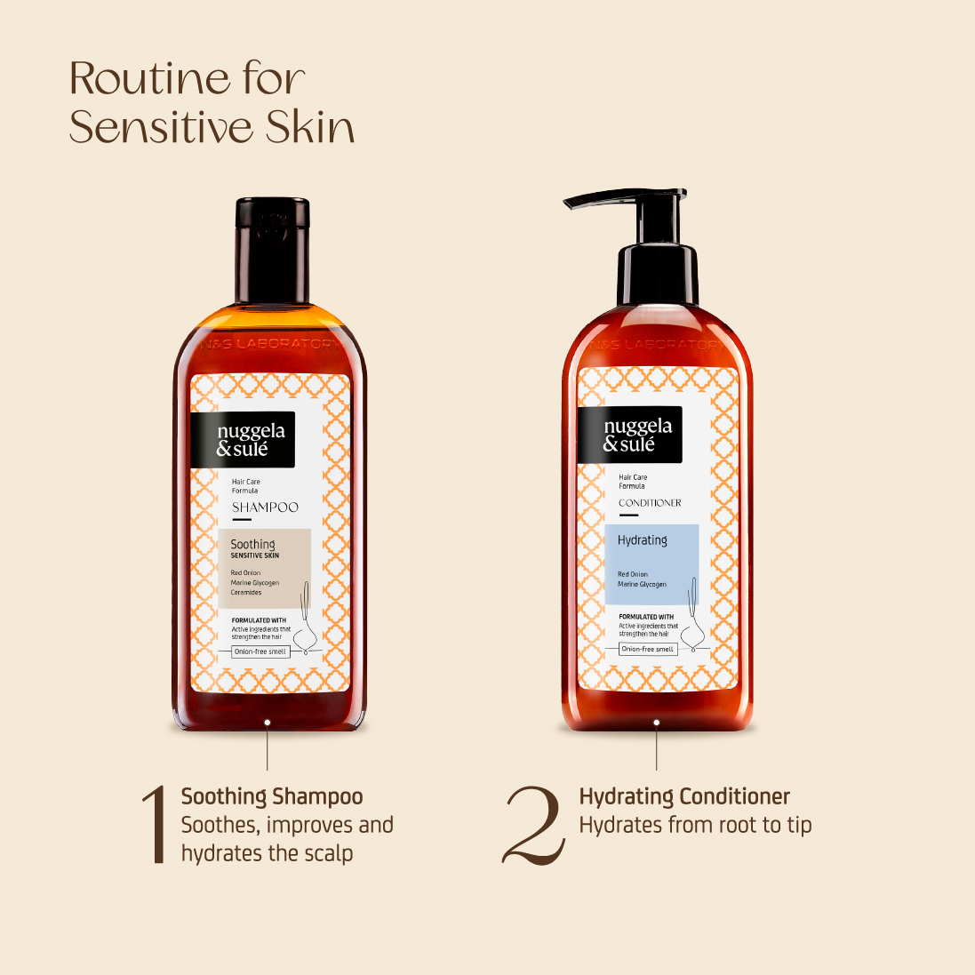 A shampoo for sensitive scalps that strengthens the hair from the first wash, while soothing, improving scalp comfort and providing hydration.