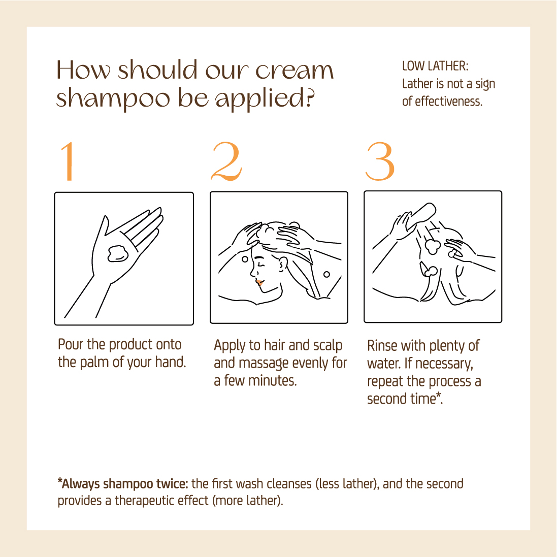 LOW LATHER: Lather is not a sign of effectiveness.