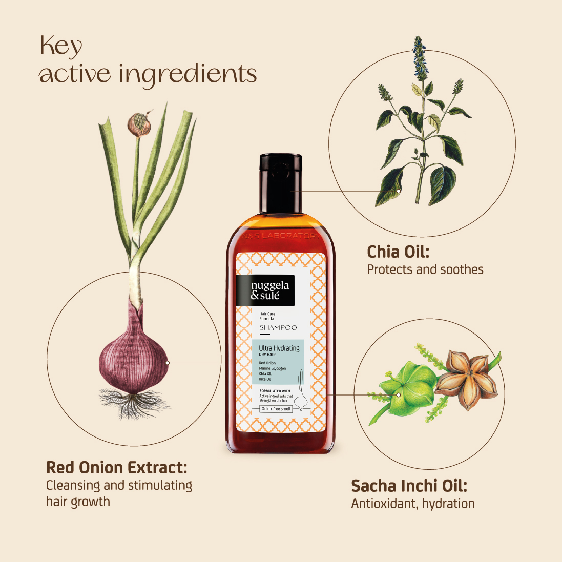 With Red Onion Extract, Marine Glycogen, Sacha Inchi Oil, Chia Oil, and Castor Oil active ingredients with a high concentration of antioxidants that instantly repair and nourish the hair.