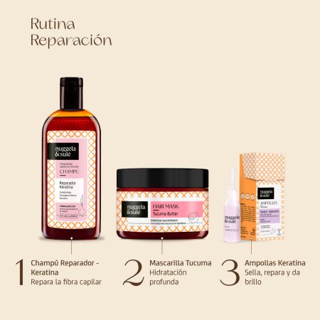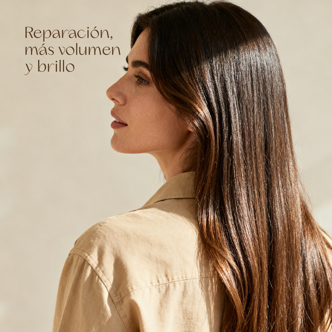 Tratamiento muy rico en proteínas destinado a restaurar la fibra del cabello. Fortalece desde la fibra capilar hasta el folículo piloso, mejorando su vitalidad por fuera y por dentro. No contiene sal, ni siliconas, ni sulfatos.