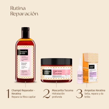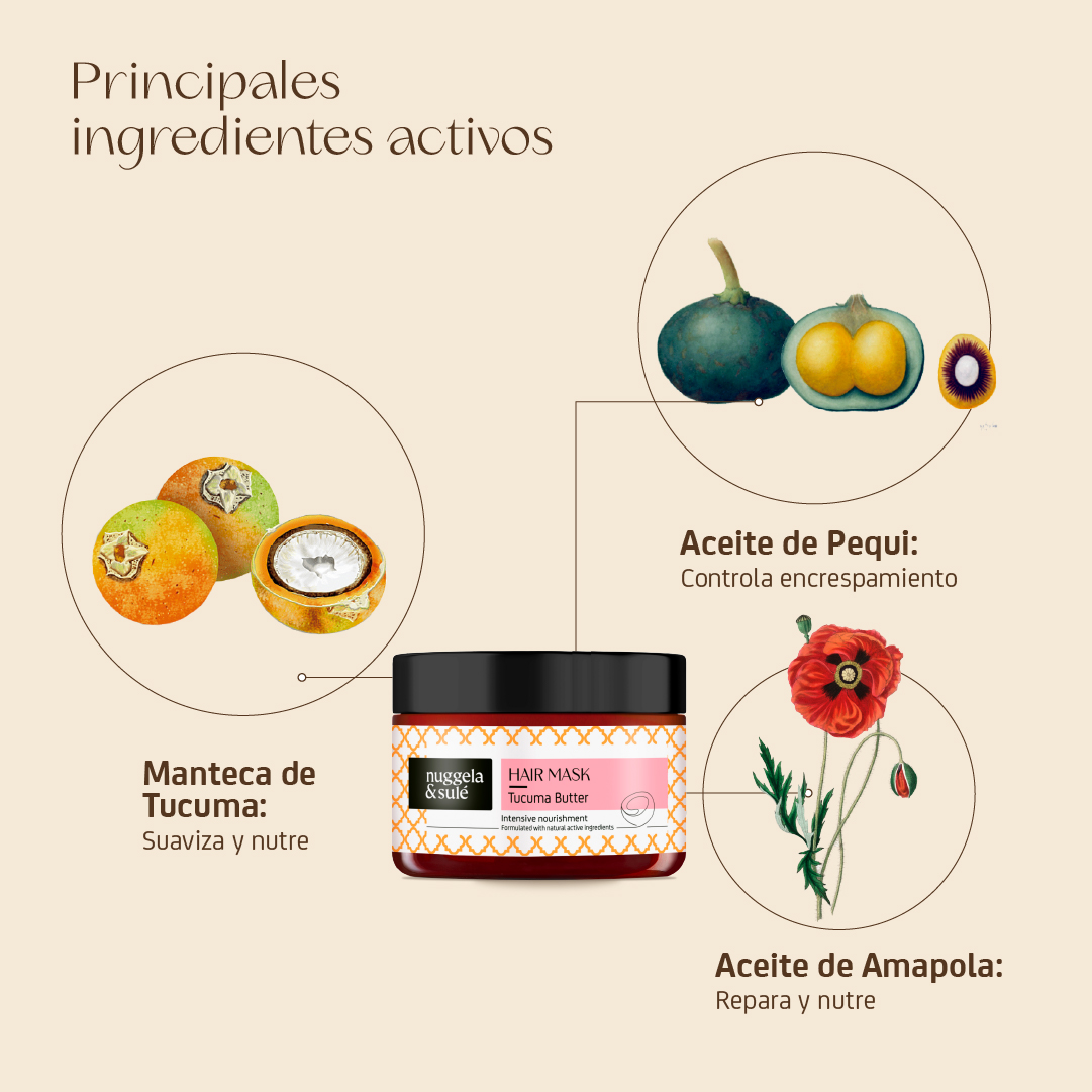 Con Manteca de Tucuma, Aceite de Pequi, Extracto de Hoja de Alcachofa y Aceite de Amapola, ingredientes activos que reparan y nutren intensamente el cabello.