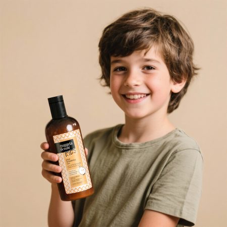 Fórmula suave para a higiene diária do cabelo das crianças, ideal para o crescimento saudável do cabelo, uma vez que fortalece o cabelo em cada lavagem
