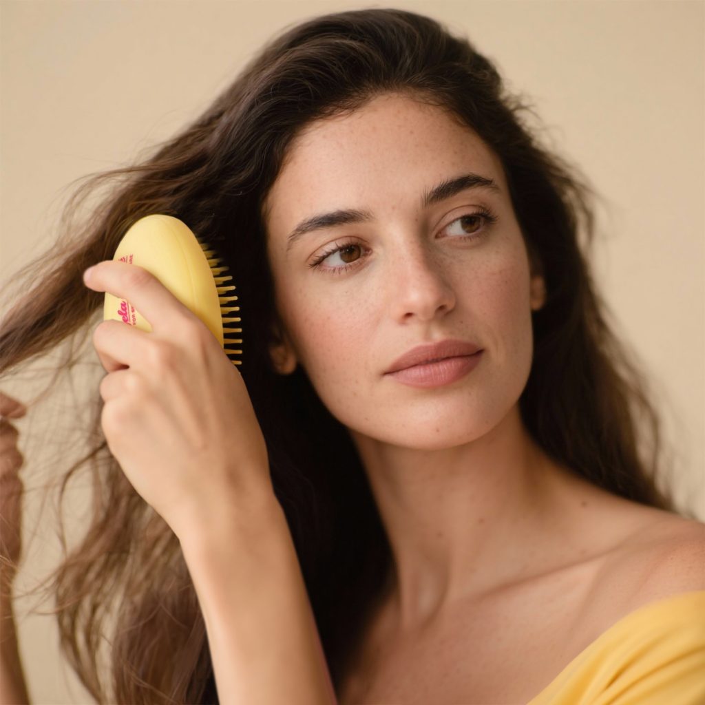 A escova perfeita para desembaraçar o cabelo de forma eficaz, sem puxões nem quebras. Concebida com tecnologia de tripla fiada em diferentes alturas, desliza suavemente por todo o tipo de cabelo, mesmo o mais rebelde, respeitando tanto a fibra capilar como o couro cabeludo graças às suas pcerdas flexíveis e arredondadas..