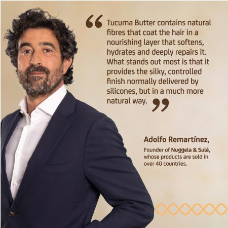 Extraída da fruta do palmeira, é um dos grandes avanços na pesquisa cosmética, uma vez que é uma alternativa 100% natural, limpa e eficiente aos silicones. A Manteiga de Tucumã é rica em ácidos graxos (ácido láurico e esteárico) e tem um alto complexo vitamínico, como a vitamina E.