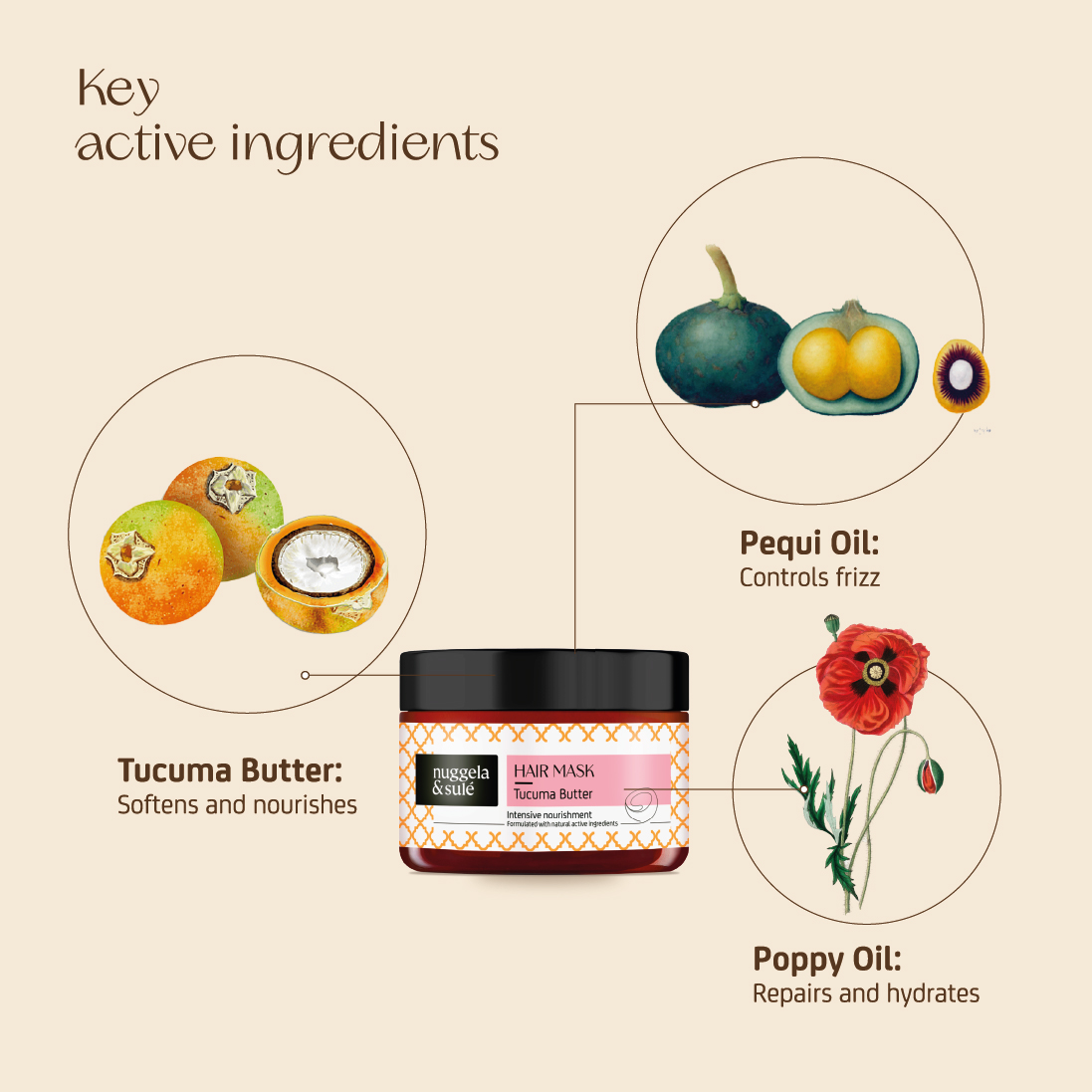Com Manteiga de Tucumã, Óleo de Pequi, Extrato de Folha de Alcachofra e Óleo de Papoila, ingredientes ativos que reparam e nutrem intensamente o cabelo.