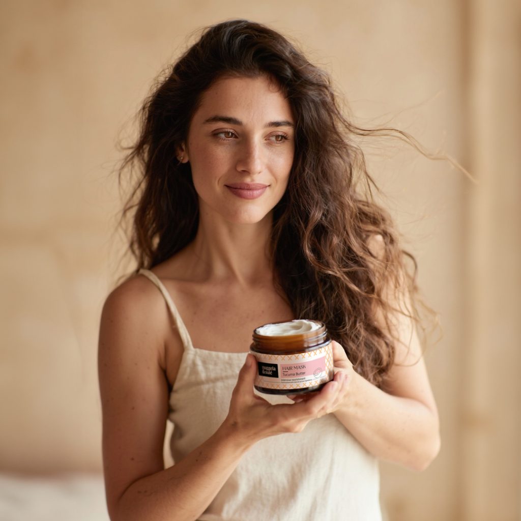 Graças às fibras naturais da Manteiga de Tucumã, o cabelo é envolvido por uma camada nutritiva que suaviza, hidrata e repara intensamente. Uma alternativa natural que substitui as siliconas tradicionais, deixando o cabelo solto, leve e saudável.
